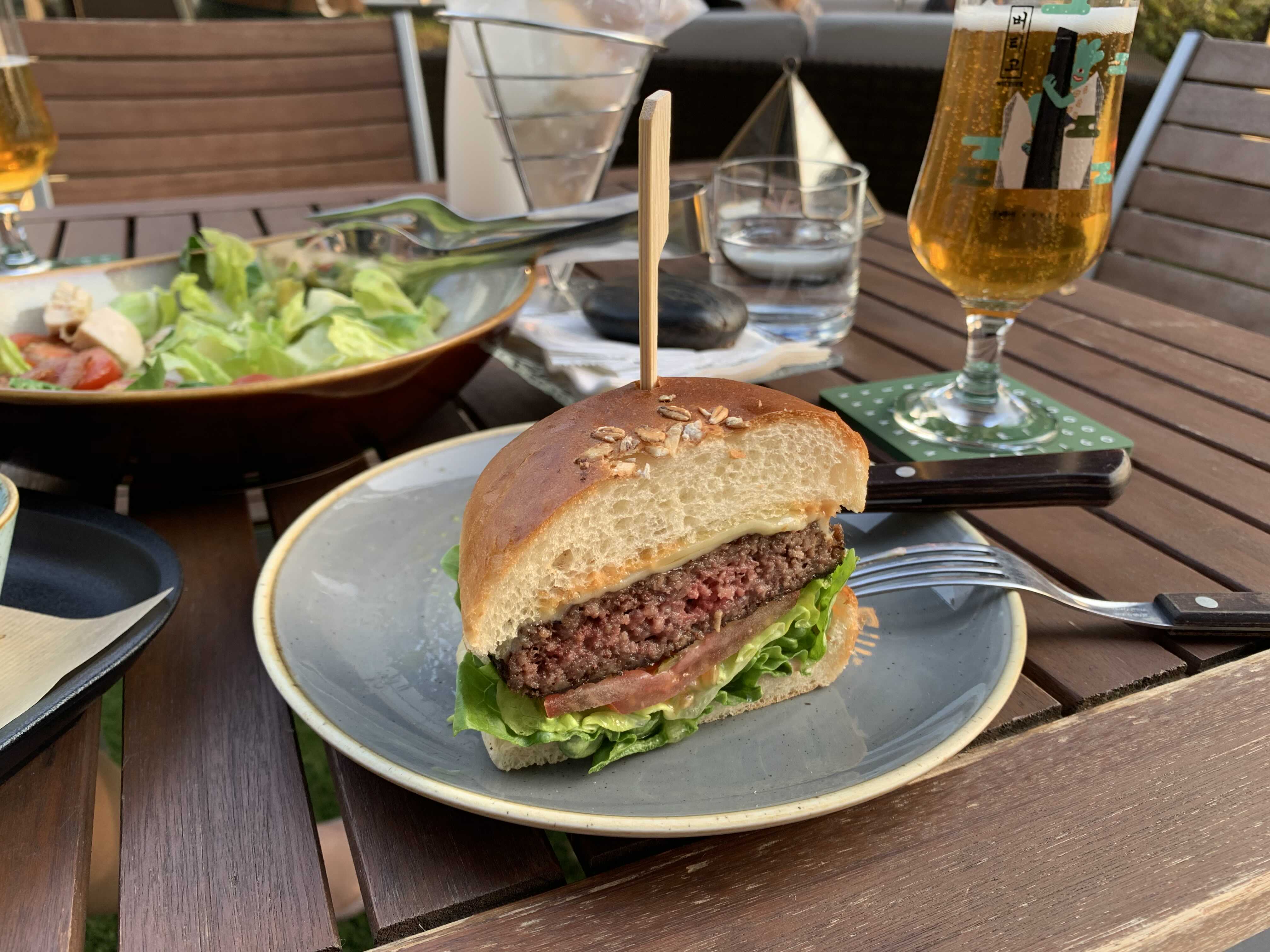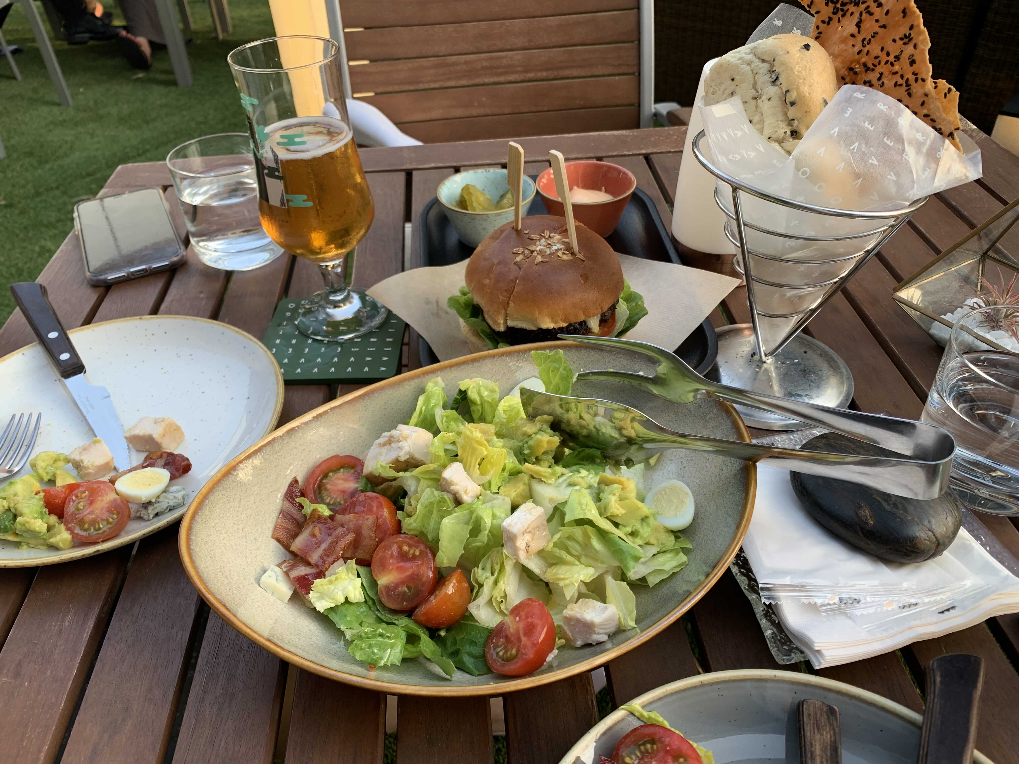그래도 음식은 맛이 좋아요! 저희는 콥샐러드와 시그니처 버거를 시켰습니다. 간도 적당하고, 소스도 맛있어요. 햄버거 패티도 두껍고 육즙이 살아 있는 패티이고, 빵도 노릇노릇 잘 구워 졌어요.