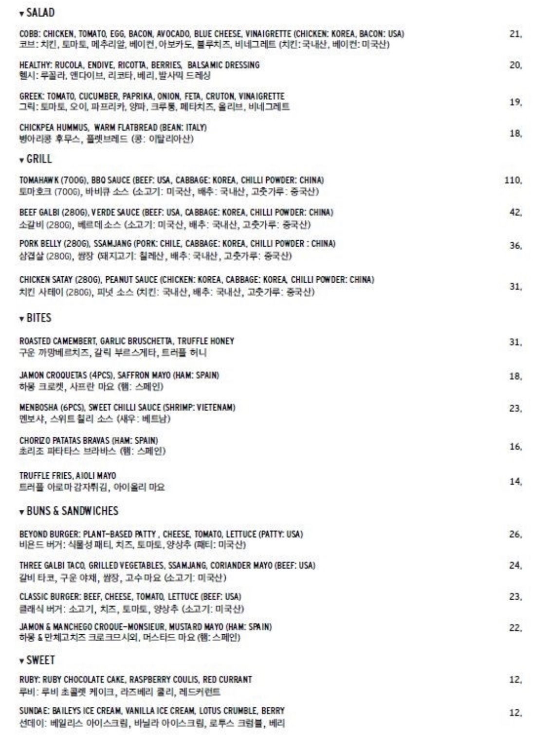콘래드 버티고의 메뉴판은 요렇게 되어있구요,