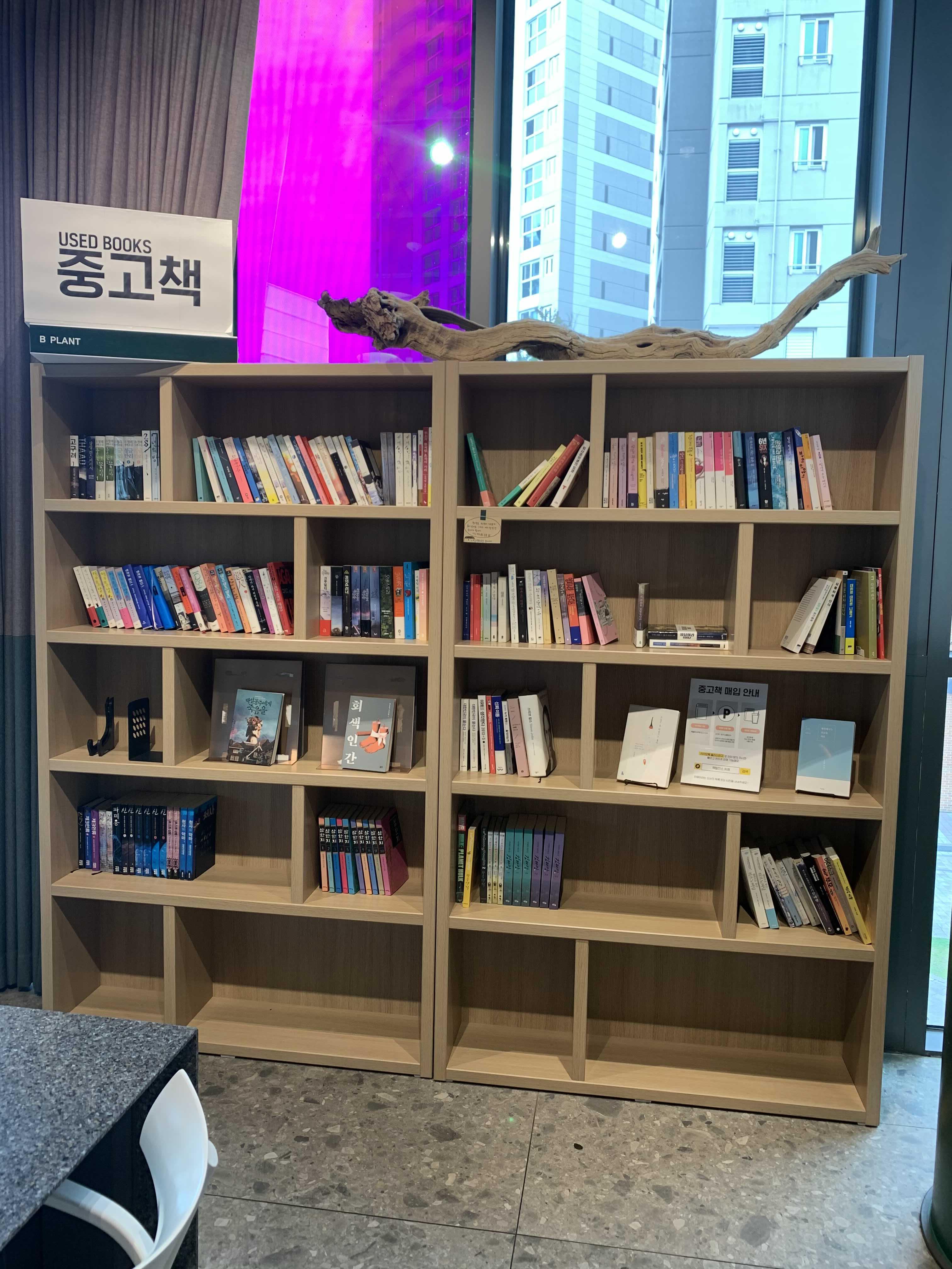 어린이를 위한 섹션과, 중고책 섹션이예요. 전 평일 오전에 방문해서 사람이 많지는 않았는데, 주말에는 가족 단위 손님이 많을 것 같다는 생각이 드네요!